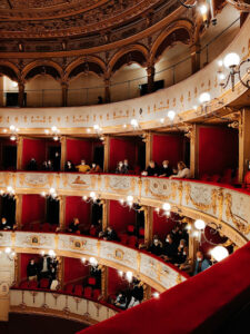 Prosa, danza e musica classica in una sfarzosa sala inaugurata nel 1872 con decorazioni dorate e soffitto affrescato. Nonostante la sua non eccessiva capienza, circa