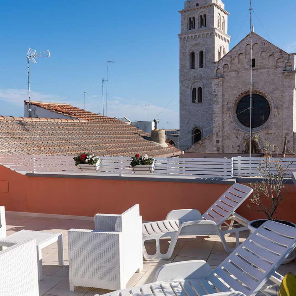 Questa suite è come un nido d’aquila che sovrasta il centro storico con una vista mare mozzafiato e una prospettiva unica della Cattedrale.