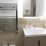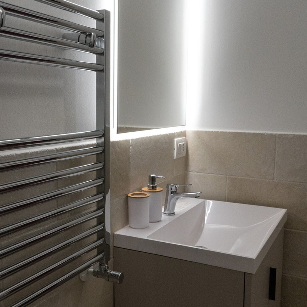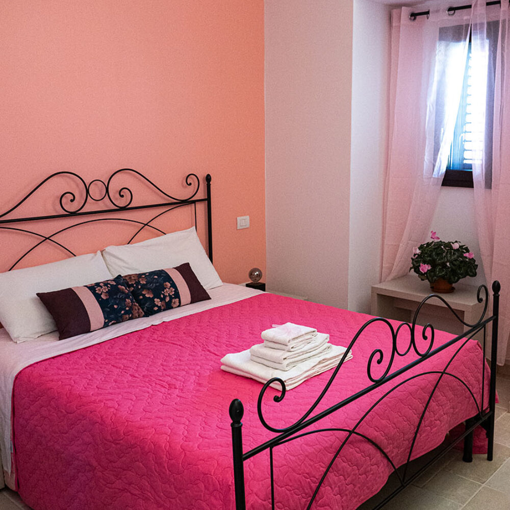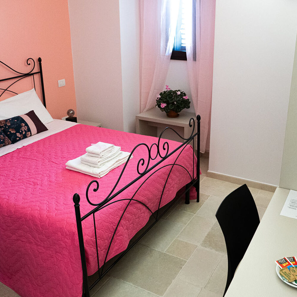 L’ambiente è accogliente con un arredamento in ferro battuto sfizioso e un pizzico rétro abbinato ad una pavimentazione in pietra bianca. La classica sala da bagno è dotata di ogni comfort necessario ad un soggiorno pratico ma sempre confortevole nel rispetto della mission della Guest House.